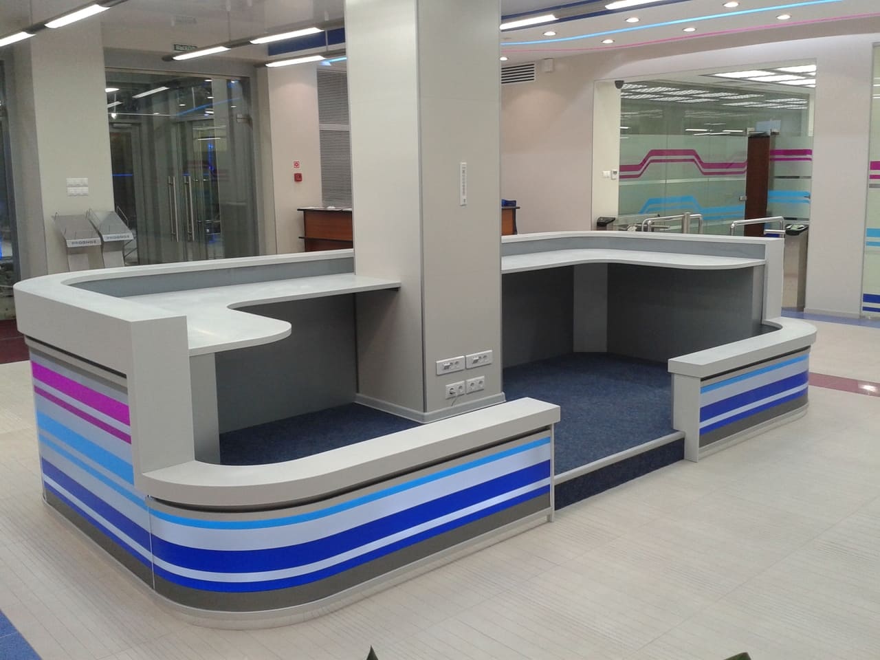 Дизайн. Ресепшен - визитная карточка компании (предприятия), которая отвечает за первое впечатление об организации. Стойка должна соответствовать брендбуку компании и вызывать положительные эмоции. Только качественная проработка дизайна, типов материалов и правильное использование пространства позволит создать уникальную welcome-зону, отвечающую всем запросам заказчика.